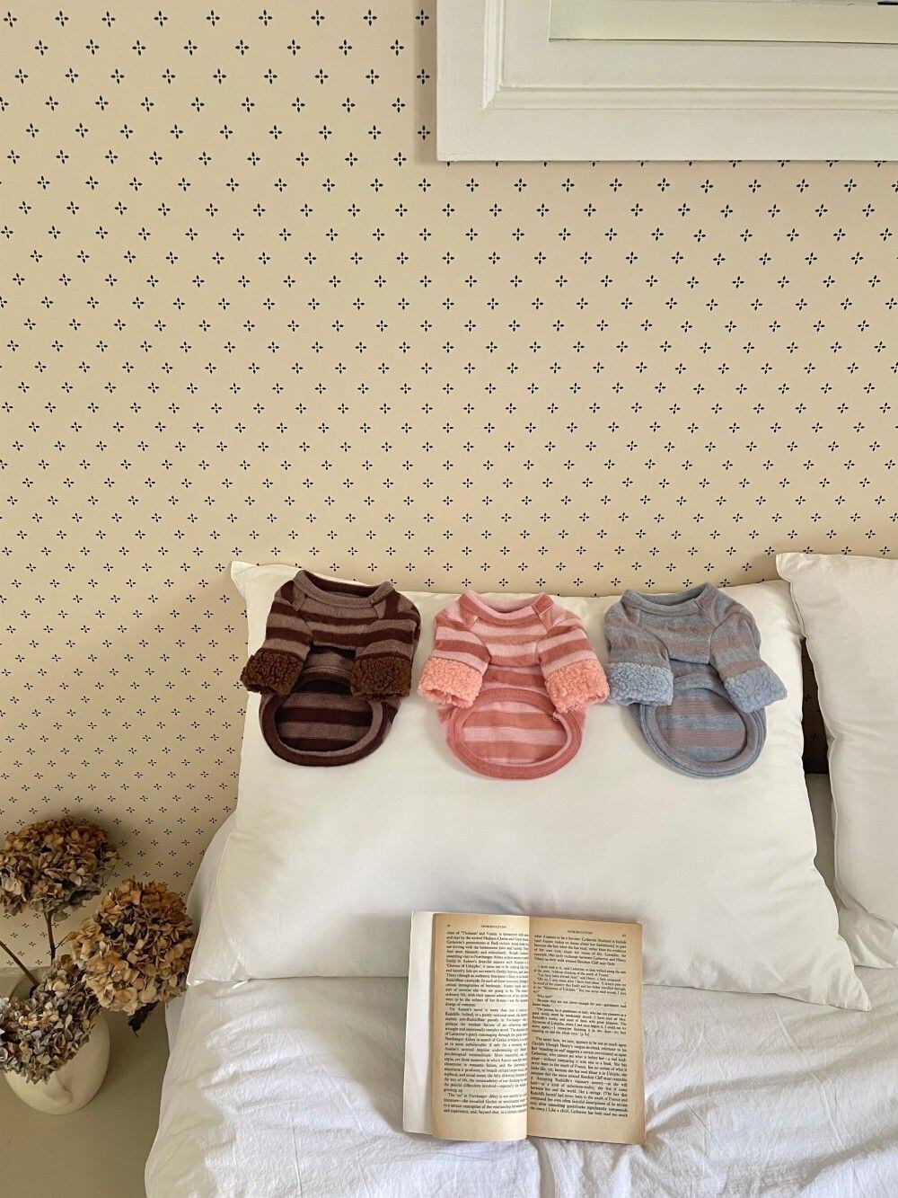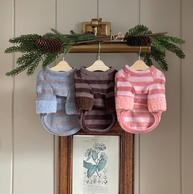 ■おしゃれなストライプ柄: どんな毛色にも合わせやすい、ブルー系、ブラウン系、ピンク系の3色をご用意。落ち着いたトーンで、普段使いからお出かけまで幅広く活躍します。