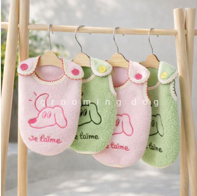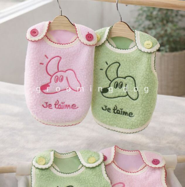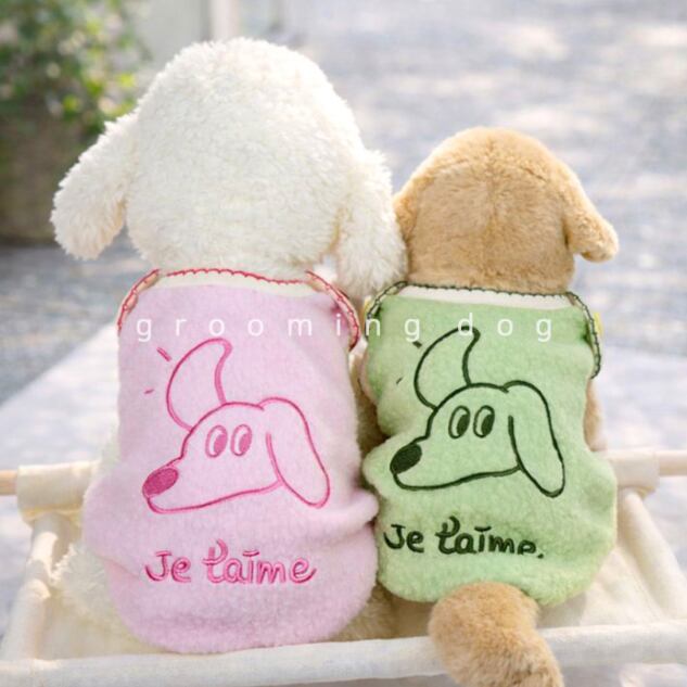 ワンちゃんへの「大好き」を込めて。 フランス語で "Je t'aime"(愛してる)の刺繍が入った、手触りバツグンのボアベストが登場しました。