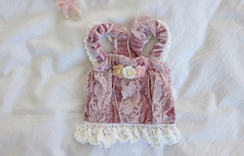 光沢のあるベロア生地に、繊細なレースと手編みのモチーフを贅沢にあしらったキャミソールが登場しました。