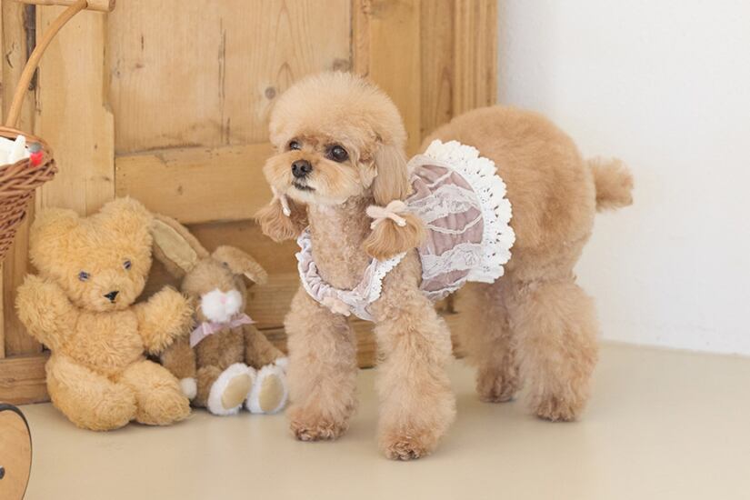裾にはボリューム感のあるスカラップレースを配置。歩くたびに可愛らしく揺れるこだわりのラインです。