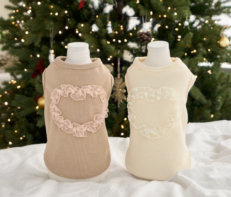 柔らかで心地よい肌触りの生地に、繊細なチュールフリルのハートをあしらいました。