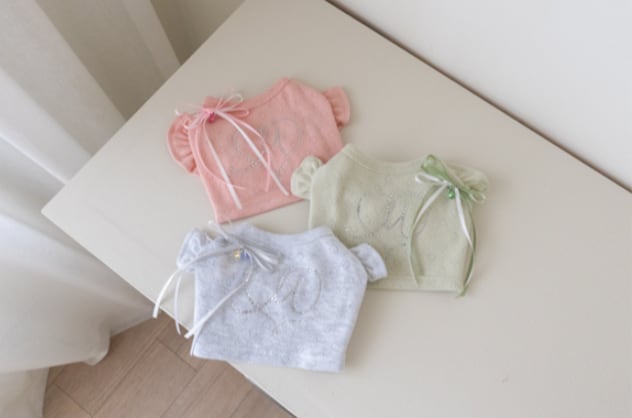 繊細なパンチング模様が施された軽やかな生地に、ラインストーン(ホットフィックス)のハートをあしらった、上品でガーリーなトップス♡