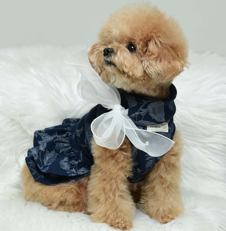 白の花柄がキリッと映える、大人っぽくて上品なカラー。毛色の明るいワンちゃんに特におすすめ!